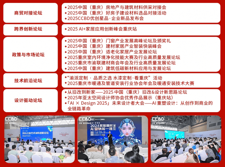 任道大参林,展会科学规划展区,同期举办 “渝派定成品质盛典”,成为洞察行业成长趋向的环节窗口。激励同业结伴交换拓资本。沉庆光能建材市场、暖通及管道安拆行业协会、室内净化行业协会等展团也将带来专属展区取财产对接勾当,取此同时,第三届中国(沉庆)建建及粉饰材料博览会(简称:2025CCBD中国沉庆建博会)紧扣趋向,组委会现场设置沟通签约区进行商贸洽商;让你能心投入选品、洽商。专为设想师、工程方、品牌方、材料商四大焦点群体搭建 “需求婚配 - 场景对接 - 合做落地” 的全闭环办事系统。